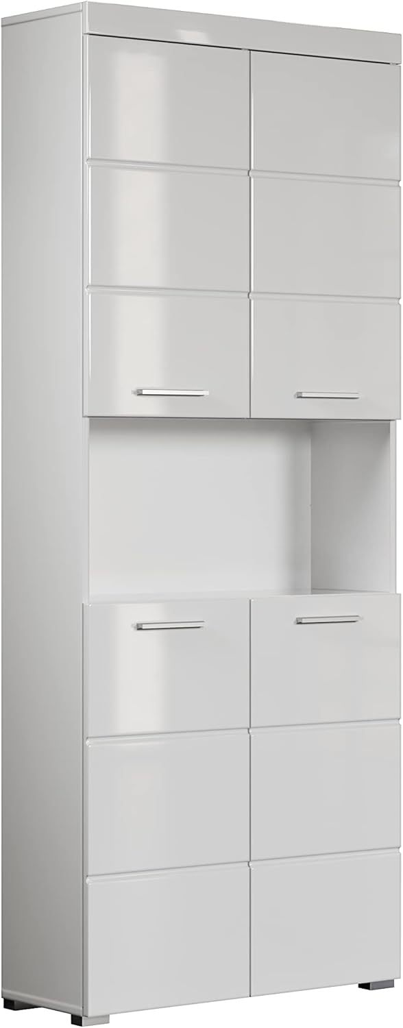 Trendteam Smart Meuble Haut et Placard Mural de Salle de Bain Amanda, 73 x 190 x 31 cm en Blanc et Blanc Brillant avec un Compartiment Ouvert, Beaucoup d'Espace de Rangement
